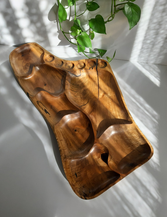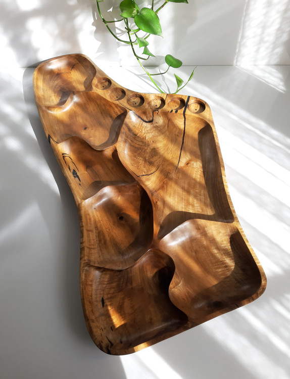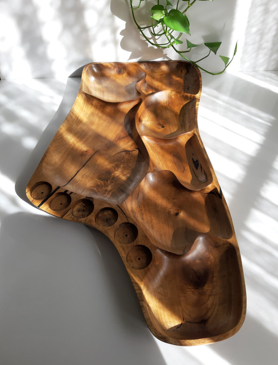 سینی مزه ساخته شده از چوب یک تکه گردو با کیفیت و دوام بسیار بالا، آبگریز شده با بهترین نوع روغن گیاهی مخصوص ظروف چوبی، دارای ۶ خانه کوچکتر که مخصوص تنقلات و یک خانه بزرگ برای میوه و ۶ جای شات یا لیوان است.