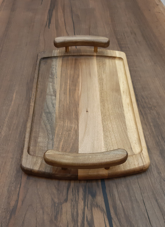 سینی پذیرایی ساخته شده از چوب گردو که با طرحی خاص و دستههای زیبا مناسب پذیرایی چایی میباشد. بهترین انتخاب هم از لحاظ جنس چوب و هم از لحاظ قیمت، ضمانت کیفیت و مرجوعی کالا